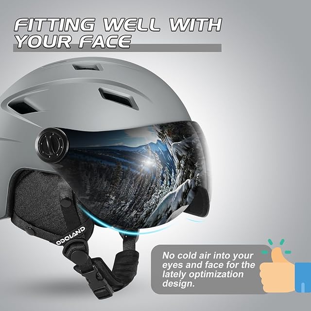Odoland スキーヘルメット バイザースノーボードヘルメット OTGメガネ対応 ゴーグル付き ダイヤル式サイズ メンズ レディース 大人用 グレー S
