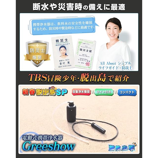 GreeShow【業界新発想】 携帯浄水器 アウトドア サバイバル浄水器 濾過器 USB電動 登山 キャンプ 野営 災害用 防災用 グッズ 軽量 LED電灯搭載 GS-2801 フィルター 2個セット