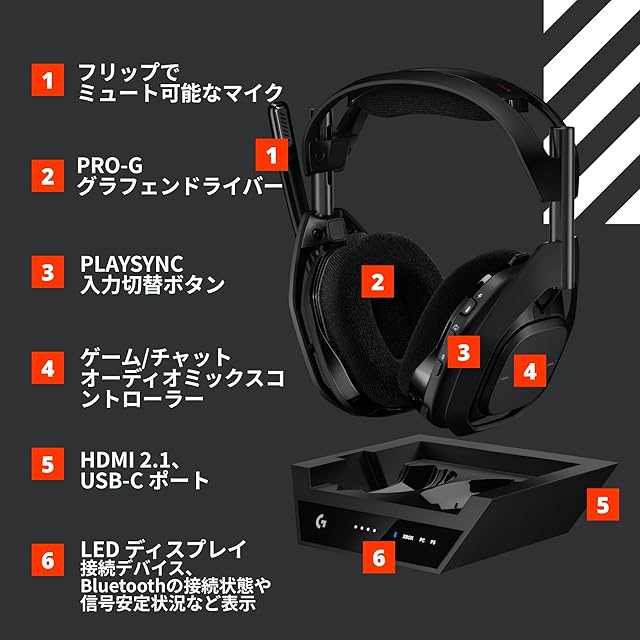 Logicool G ゲーミングヘッドセット ASTRO A50 X LIGHTSPEED A50X-BK ワイヤレス ヘッドセット + ベースステーション ミックスアンプ 内蔵 マイク付き 充電 24時間連続使用可能 軽量 363g Bluetooth ブラック PS5 PS4 Xbox PC ゲーミング ヘッドホン ヘッドフォン 国内正規品 【 ファイナルファンタジー XIV 推奨モデル 】