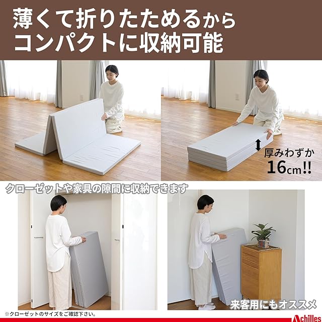 [アキレス] マットレス 折りたたみ 硬め 高硬度(190N) 腰痛 シングル 抗菌 消臭 厚み4㎝ 車中泊 災害 ごろ寝 四つ折り コンパクト ブラウン MK4-S(BR)