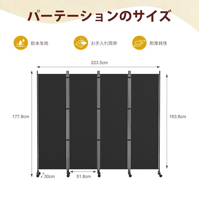 アフターサービス: パーテーションのサイズ: 幅233cm x 高さ178cm、各パネルのサイズ: 幅51.8cm x 高さ163.8cm。間仕切りはリビングルーム、オフィス、事務所、病院や他のシーンでも適しています。購入前または購入後に問題があったら、いつでもご連絡してください。