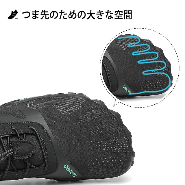 多機能: 陸上・水中両用。筋トレ、フィットネス、トレーニング、トレッキング、キャンプなどに適しています。また、ビーチシューズやウォーターシューズとしても最適