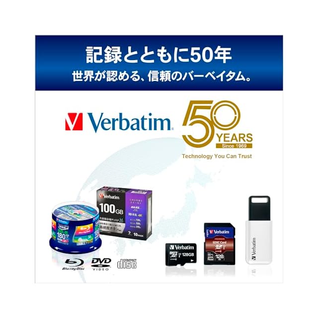 Verbatim バーベイタム 1回録画用 ブルーレイディスク BD-R 25GB 100枚 ホワイトプリンタブル 片面1層 1-6倍速 VBR130RP100SV4