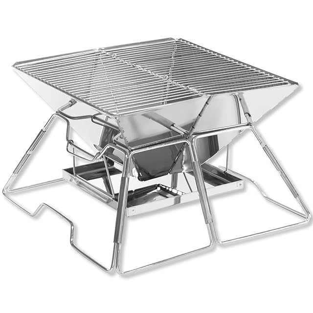 【商品仕様】 本体と焼き網の材質:ステンレス、収納サイズ:39×22.2×5.5cm、展開サイズ:39×38.5×22cm、焼き網面積:30×30cm、およそ2~4人ぐらいのファミリーやグループでBBQするには丁度良いサイズです。