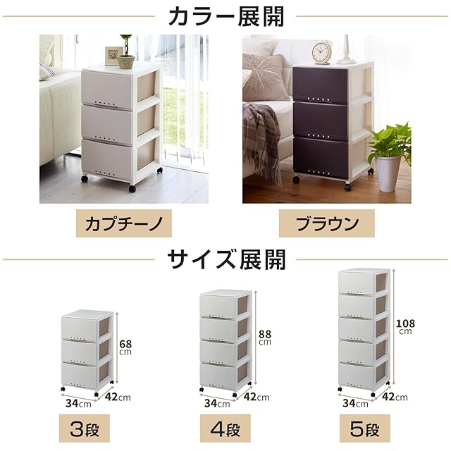 天馬(Tenma) シーンを選ばず使える収納チェスト 日本製 完成品 ルームケース 4段 キャスター付きで移動が簡単 引出しロック付きで抜け落ちを防ぐスムーズな引出し タンス 収納ケース 衣装ケース プラスチック 【組立不要】 【色 カプチーノ】 【サイズ 3404】 【幅34×奥行42×高さ88cm】