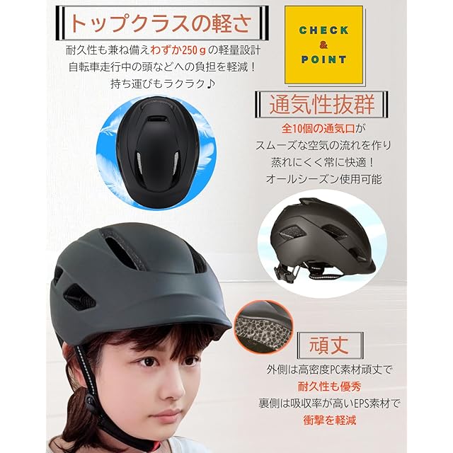 ✅【軽量化実現】トップクラス軽量感!250gの軽量設計で、自転車走行 中頭や首への負担を減らし、快適にご使用いただけます。