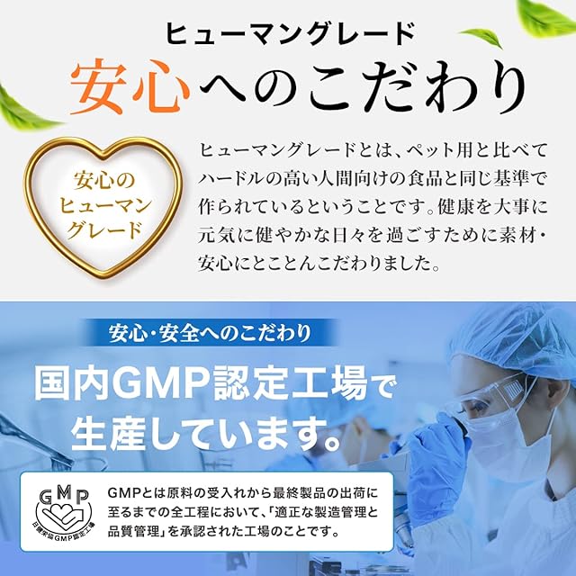 ✅【安心のヒューマングレード】 人間のサプリメントと同じGMP認定の国内工場で製造しています。