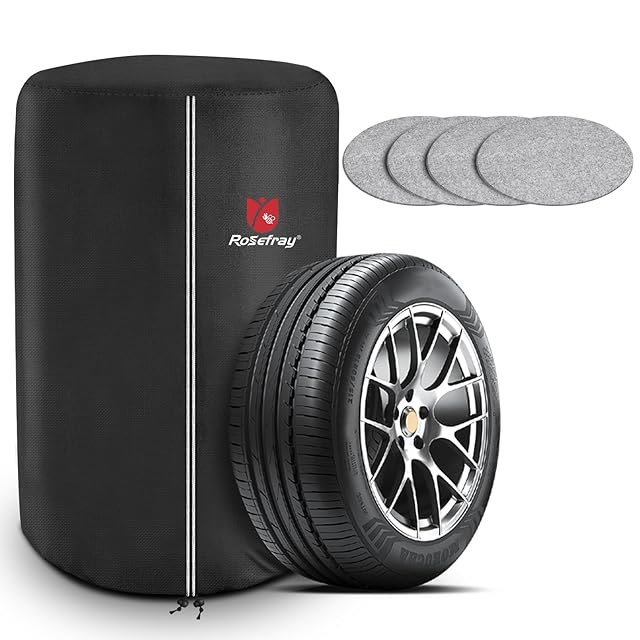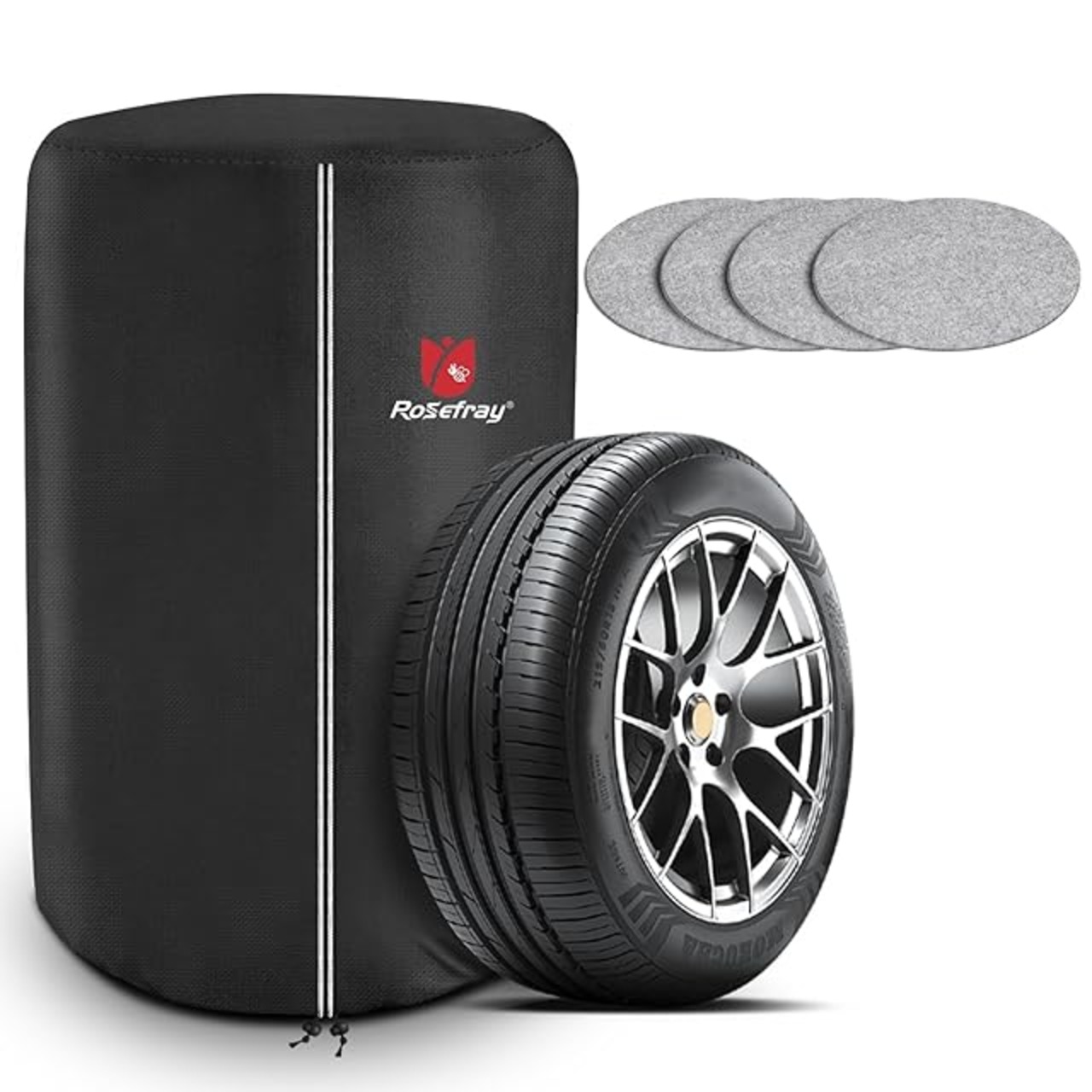 Rosefray タイヤカバー 屋外 フェルトパッド4枚付き 防水 頑丈で引き裂き抵抗 4本タイヤ保管 420D 幅65*高さ90cm 軽自動車用(12/13/14/15インチ)ブラック
