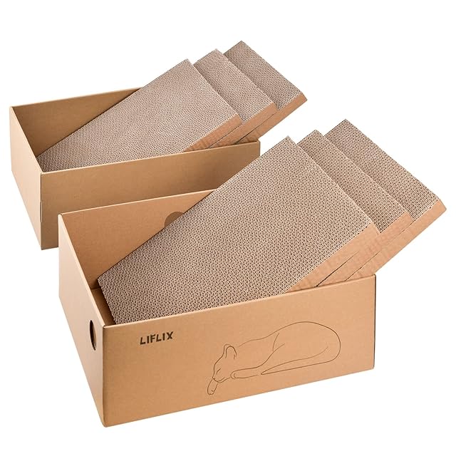 LIFLIX 猫 爪研ぎ 段ボール 箱型 猫 つめとぎ6枚入り 猫ベッド兼用 経済的 掃除楽 43.5×33.5×15.5cm