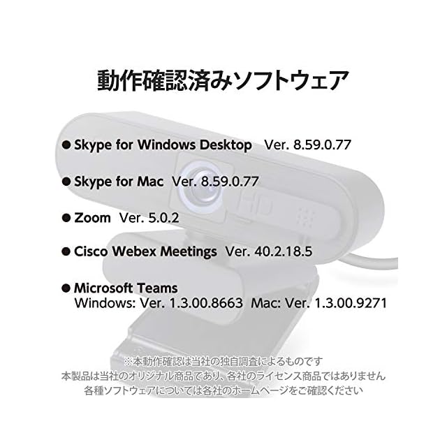 Skype、Zoom、Cisco Webex Meetings、Microsoft Teamsの各種ビデオ通話サービスで動作確認済みです。