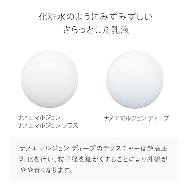 【セラミドで作る独自の乳化法】通常、乳液を作るためには乳化剤が必要ですが、ナノエマルジョンプラスは疑似セラミドに超高圧をかけることで、セラミド自身でナノ乳化。肌なじみの良さが特徴です。
