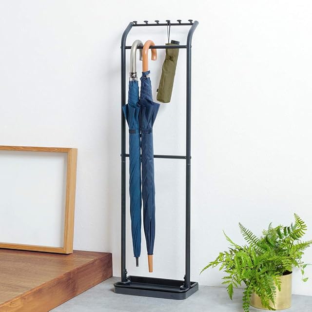 水切れも良好で傘が傷みにくく、折りたたみ傘や短い傘も収納できるフック付