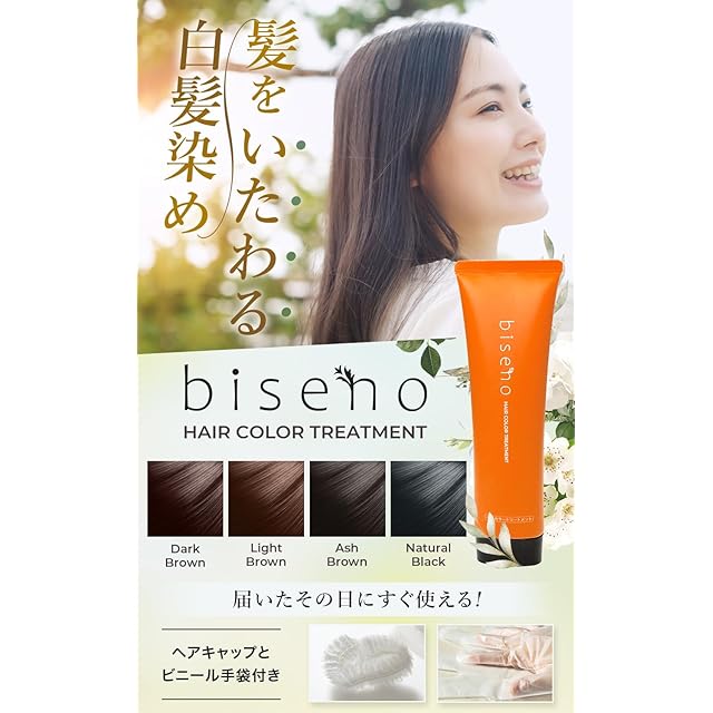 【オーガニック 白髪ケア】biseno ヘアカラートリートメント ライトブラウン 150g(約1か月分) ジアミンフリー レディース メンズ フローラルの香り 植物由来
