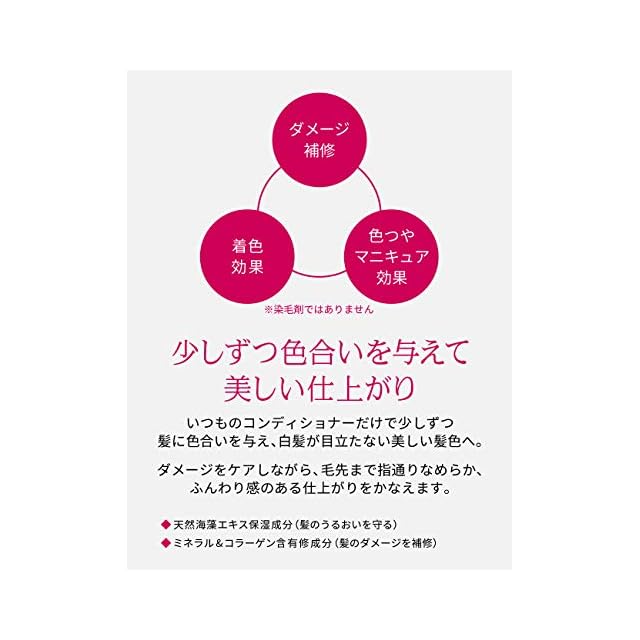 【置くだけ5分】普段のコンディショナーを変えるだけで、髪に少しずつ色合いを与えて、生え際白髪が目立たない美しい髪に。