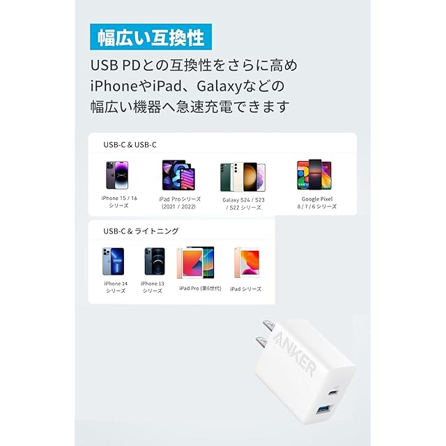 Anker Charger (20W, 2-Port) 【PSE技術基準適合/USB PD対応/20W急速充電器/コンパクトサイズ】 Android スマートフォン iPad その他 各種機器対応 (ホワイト)
