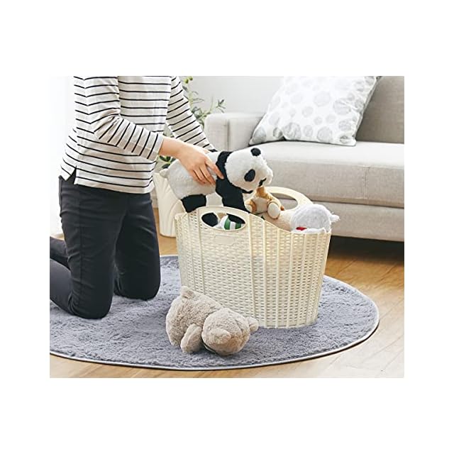セイエイ(Seiei)【 折りたためる ランドリー バスケット ラタン調 アイボリー (大) 120412】ランドリーバスケット ランドリー収納 洗濯カゴ 洗濯物収納 物干し