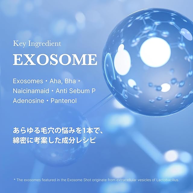 【エクソソームコート技術】次世代のスキンケアを活用し、エクソソームコートスピキュールとエクソソームが肌に浸透し、アクティブ成分を効果的に届けます。先進の処方で、毛穴ケアや肌のエネルギー向上など、さまざまな悩みに対応します。