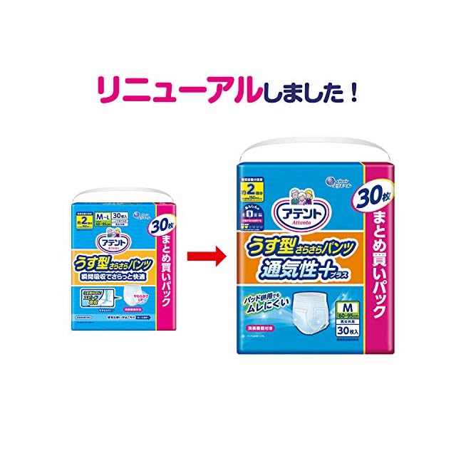 アテント うす型さらさらパンツ 通気性プラス M 男女共用 2回吸収 30枚【介助があれば歩ける方】【大容量】