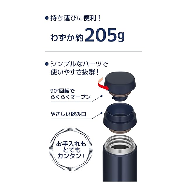 サイズ(約):幅6.5×奥行6.5×高さ21.5cm、本体重量(約):200g、容量:500ml