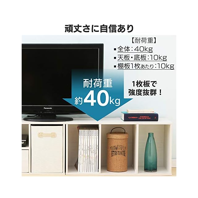 耐荷重:全体40kg、天板・底板10kg、棚板1枚あたり10kg