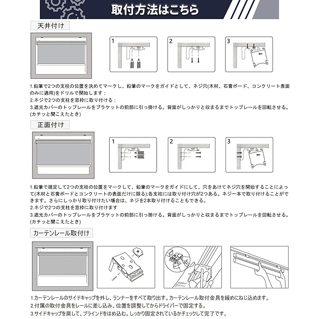 【簡単取付け】天井付け、正面付け、ランナータイプのカーテンレールへのお取り付けが可能です。【多用途】彼は太陽を遮ることができます、また、床や家具の日焼けを防ぎます。寝室、小窓、居間、目隠し、キッチン、キッチン、バスルーム、オフィスでの使用をお勧めします。