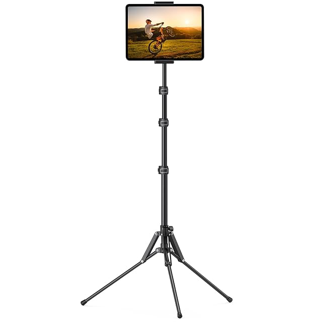Lomicall タブレット 三脚 スタンド フロアスタンド 固定 ホルダー 角度調整 高さ調整 : 三脚用 縦置きスタンド ソファ タブレット置き 撮影 三脚 コンパクト 軽量 ワンタッチ タブレット対応 4.7~12.9 インチ ミニ エア プロ ipad 2024 ipad 11 第11世代 ipad pro mini Air android Galaxy Note に対応 ブラック