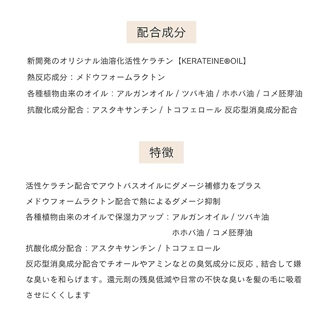 オリジナル活性ケラチン原料【KERATEINSPW】を油溶化したKERATEINEOILを新規配合した唯一のヘアオイルです!