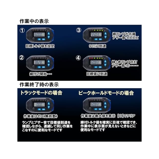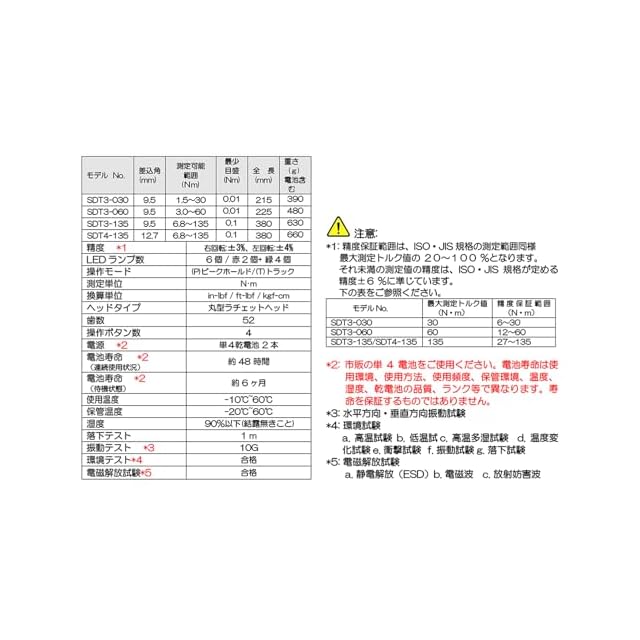 測定単位:N・m(単位換算機能付きkgf・cm、lbf・in、lbf・ft)