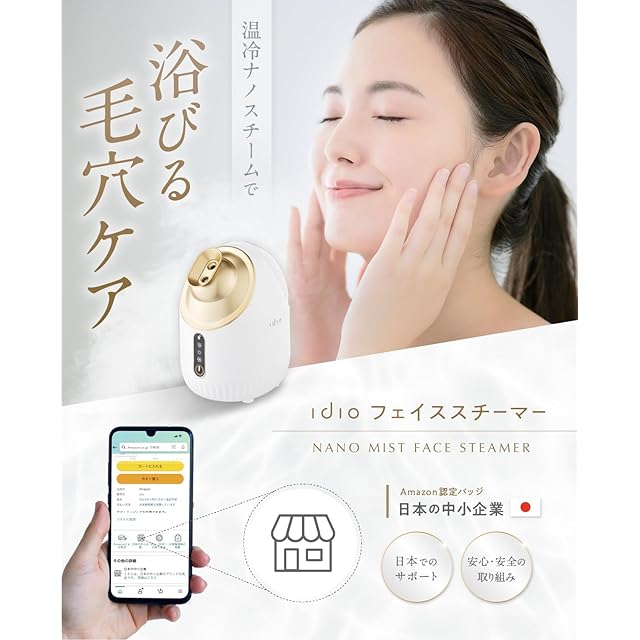 idio フェイススチーマー 皮膚科医が大注目の 濃密ナノミスト 温冷 スチーマー美顔器 水道水OK 毛穴 長いコード2m