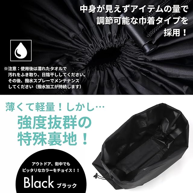 [VivaSmile] 大型収納 トートバッグ 大容量 巾着タイプ (L ブラック)