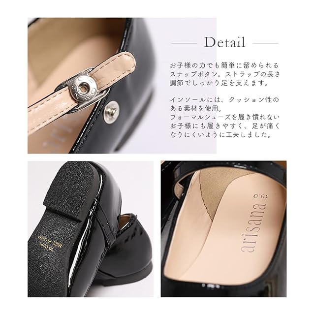 [アリサナ] フォーマルシューズ 女の子 キッズ ドレス シューズ ピアノ 発表会 子供 靴 エナメルブラック 24cm