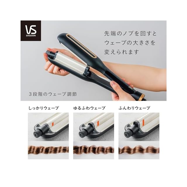 ヴィダル サスーン ウェーブアイロン ヘアアイロン 海外対応 5段階温度調節 3段階ウェーブ調節 ブラック VSW-1600/KJ