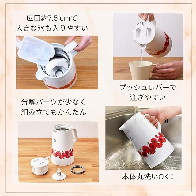 【軽くて丈夫なステンレス製】ステンレス製の真空二重構造だから、ガラス製まほうびんに比べてコンパクト、氷を直接入れても内びんの破損の心配がありません。 底の部分はへこみにくい樹脂製を採用しています。