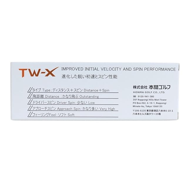 ホンマ ゴルフ ボール TW-X TW-S 2024年モデル 1ダース 12球入り ホワイト イエロー 3ピース ツアー系 スピン 飛距離 ディスタンス ソフト ゴルフボール TOUR WORLD BT2402 本間 HONMA_TW-X_ホワイト(1ダース)