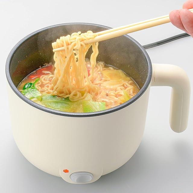 オーム(OHM) 電機 電気鍋 一人用 ラーメン鍋 16cm ひとり鍋 電気片手鍋 グリル鍋 卓上鍋 電気 保温調理鍋 卓上調理器 1.2リットル ホワイト COK-P201R-W 08-1141