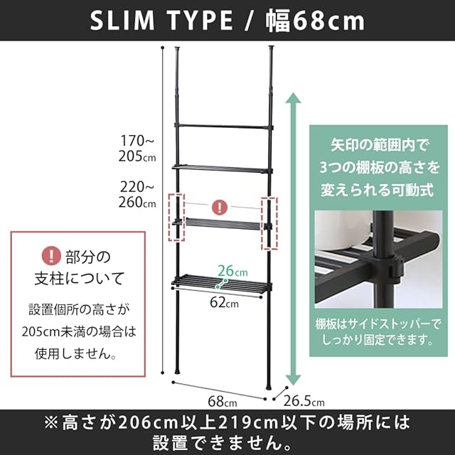 商品サイズ(cm):幅約68×奥行約26.5×高さ約170-205cm/220-260cm