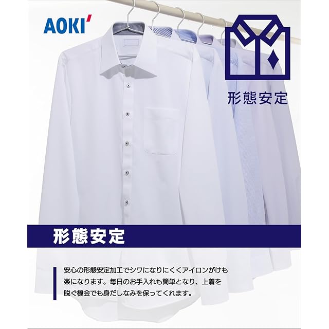 [アオキ] 長袖 白無地シャツ3点セット 【形態安定/立体パターン】 ビジネス 定番 メンズ 白無地/ボタンダウン(24TJ3P02-2)