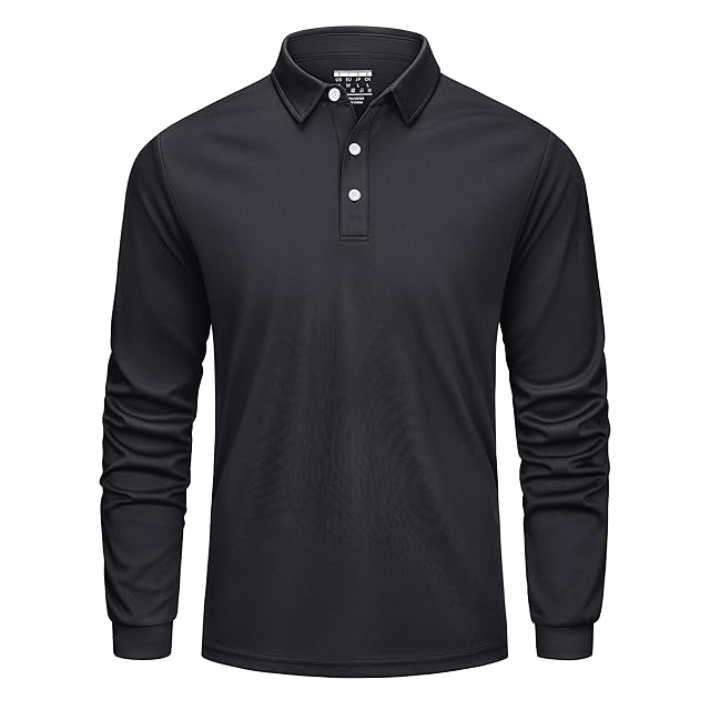 [KEFITEVD] スポーツ ポロシャツ メンズ 大きいサイズ ゴルフウェア 軽量 春秋 トップス 襟付き ビジネスシャツ 長袖 トレッキング タクティカルシャツ ロングtシャツ ブラック 2XL