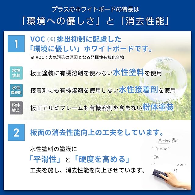素材:板面(両面)/水性塗装鋼板、縁/アルミ合金、脚/スチール(粉体塗装)、粉受け/ABS樹脂