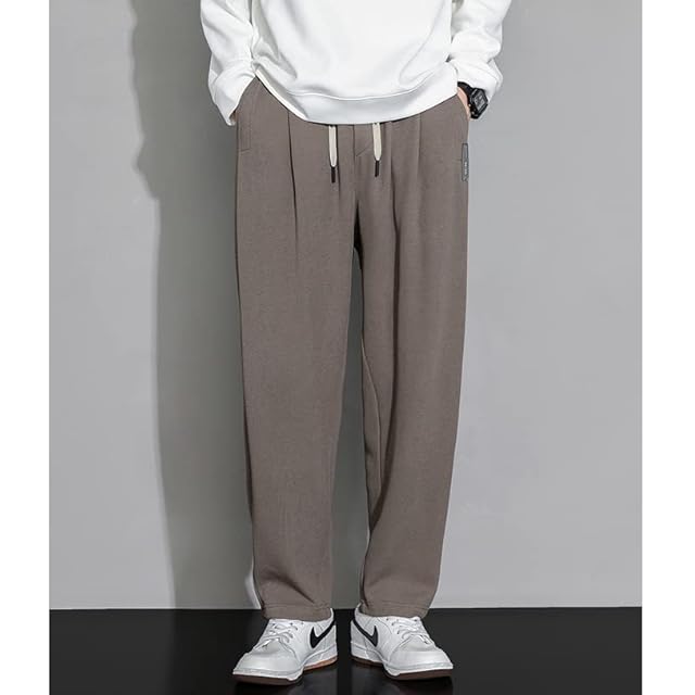 [foveitaa] メンズ ズボン ロングパンツ リラックスパンツ ワイドパンツ ガウチョパンツ 春秋用 スウェットパンツ ユニセックス ズボン ウエストゴム パンツ ジョガーパンツ 人気 無地 ボトムスcoffee-M