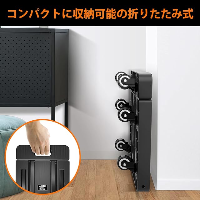 【コンパクト】移動便利の収納できる台車です。雑誌や、荷物、クーラーボックスや灯油タンクなど、様々な重い物を運べます。積載面は調節でき、長さは57.5cmまで広げます。現実との適応性がより強いです。取扱説明書は本ページに添付されて、ご確認ください。