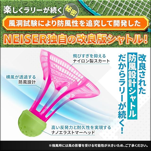 【2025年版】 NEISER アウトドアバドミントンセット [ラケット2本+防風シャトル3個+収納ケース] 風が吹く屋外でもラリーが続く! 初心者向け軽量設計 クロスミントン スピードミントン対応