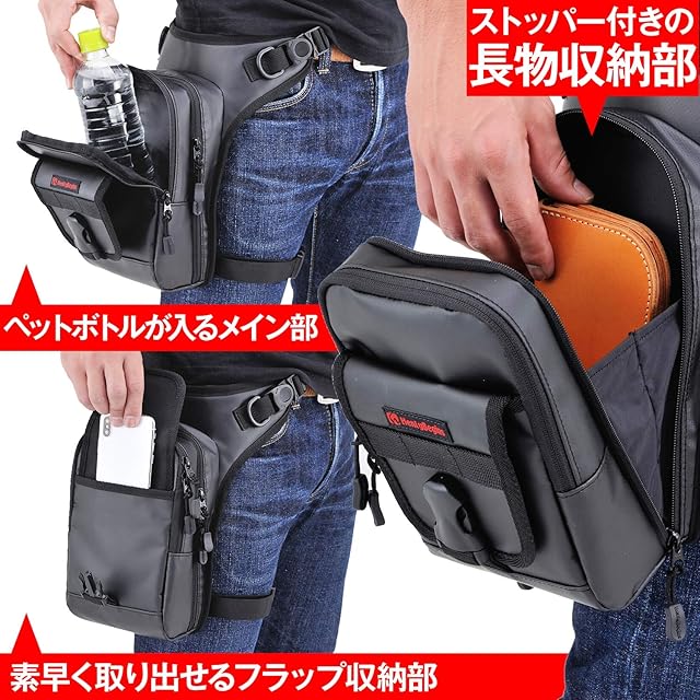 ヘンリービギンズ(Henly Begins) デイトナ バイク用 レッグバッグ 1.5L ターポリン ペットボトル収納可 3室構造 ホルスターバッグ3 DH-730 ブラック 98660