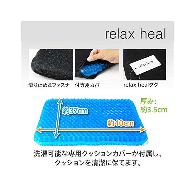 【選べる4カラー】relaxheal ゲルクッション クッション 椅子 お尻が痛くならない ジェルクッション 車 座布団 正規品 40×37cm (ブラック)