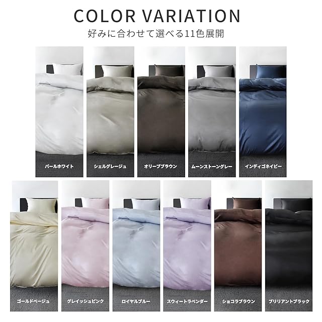 最高級の「超長綿」を贅沢に使用した上質のカバーリング 80サテンシリーズ。シルクのようにやわらかでしなやかな風合い、 上質なしっとり感、自然な美しい光沢、優れた耐久性・ 吸湿性・毛羽だちにくい、プレミアムなコットンです。 摘み取った天然コットンの中でも特別に長い平均35mm以上の超長綿を使用しており 80番の細番手糸を高密度で織り上げたサテン生地は、 しなやかさと滑らかさ、そして品の良い艶や光沢があり、防ダニ仕様、軽量で つるつるした手触りは感動ものです。 寝室を豪華な高級ホテルのように演出します。 国内縫製だから、 丈夫で高品質。羽毛布団、羽根布団にも最適、カラーも豊富にご用意しております。 春用、夏用、秋用、冬用オールシーズン使用できます。 濃色はお洗濯により色落ちする場合がございます。 ご注意ください。・洗濯時は洗濯ネットをご使用いただき、 蛍光増白剤の入っていない洗剤をご使用いただくと、 風合いを保つことができ、長くご愛用いただけます。 ・また、お洗濯後は濡れたまま長時間放置しないでください。