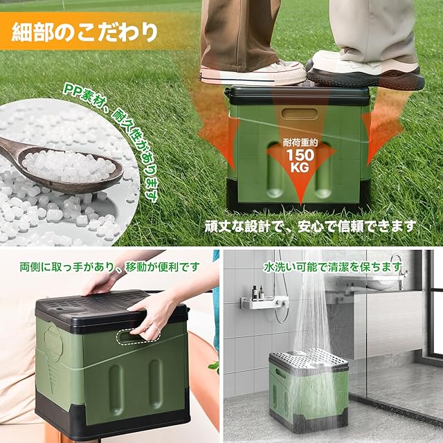 【安定感&水洗い可能】この防災グッズ トイレは、高品質で環境に優しいPP素材で作られており、転倒や圧迫に強く、約150KGの重さにも耐えられる頑丈な設計で、あらゆる体格の人が安全に使用できます。 また、折り畳みトイレ水洗いが可能なので、いつでも清潔に保つことができ、長期にわたって繰り返し使用することができます。