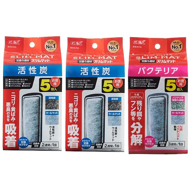 ジェックス 「スリムフィルター 活性炭マット5個入」×2個+「バクテリアマット5個入」×1個 セット