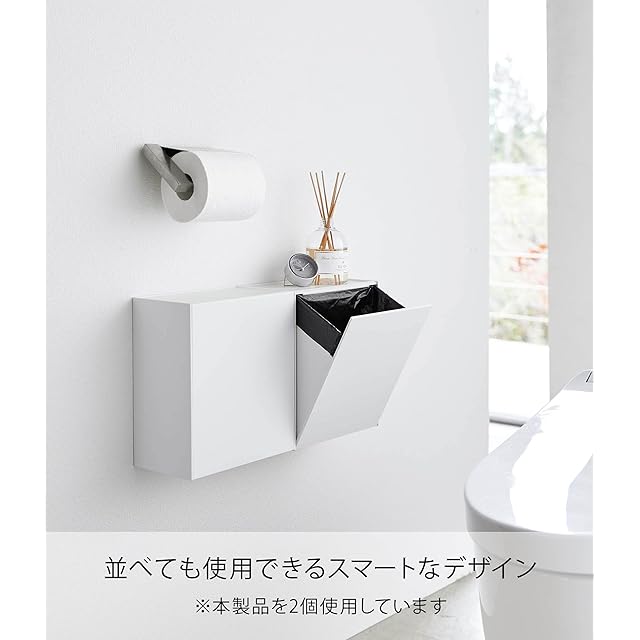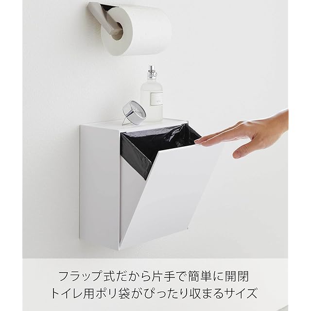 山崎実業(Yamazaki) 【 石こうボードピンセット・木ネジ 付属 】 ウォール トイレポット & 収納ケース ホワイト 約W20.5XD12.2~23.2XH24cm タワー フラップ式 小物収納 ゴミ箱 5429