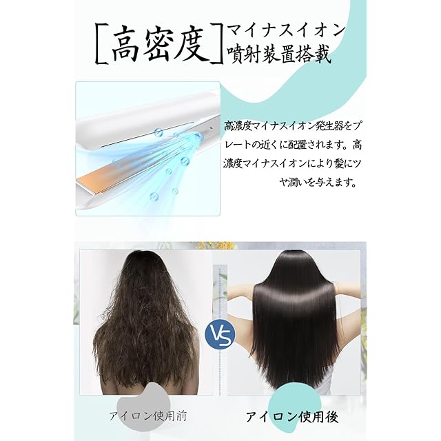 【マイナスイオンで髪に優しい】 スタイリングしながらマイナスイオンが髪に潤いを与え、ツヤ感としっとりした手触りを実現します。静電気を抑制する効果もあり、乾燥が気になる季節でもしなやかでまとまりのある髪を保つことができます。髪のダメージが気になる方にもぴったりで、髪をケアできる嬉しい機能です。