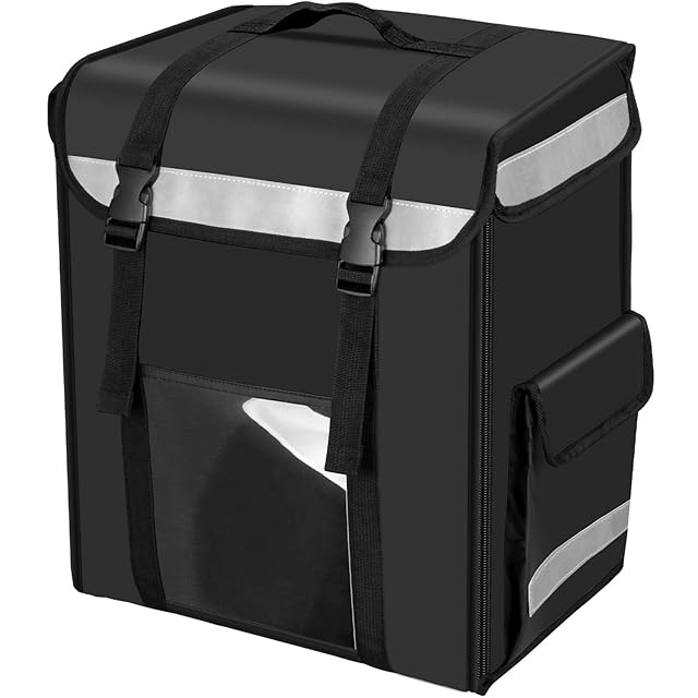 【高品質な防水材料】デリバリーバッグは高品質のPVCメッシュクロス素材を採用しています。表面は防水性に優れ、変形しにくく、滑やかで清潔しやすいです。また、改善されたナイロン防水ファスナーが水滲みを防止し、通常のファスナーより防水性に優れ、雨の日でも濡れる心配がありません。更に、デリバリーバッグの正面及び裏面に反射帯が設けられ、暗闇の中でも安心にお仕事できます。